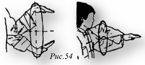| Круг пояса Особое внимание в нарабатывании подвижности, координации и силы занимают круги, выполняемые в каждом суставе тела. Обычно рассматриваются три основных круга: горизонтальный круг «пояса», вертикальный круг «колеса» и фронтальный, плоский круг «щита» (рис. 30).