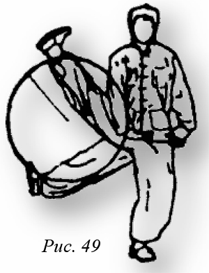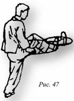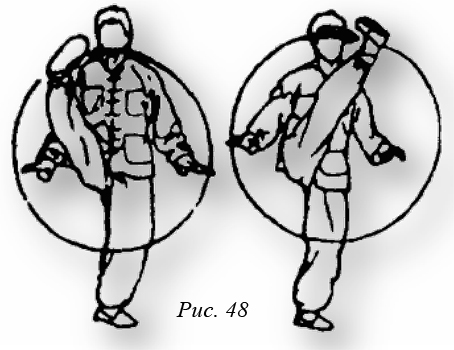 3. «Жернов». Нога совершает те же круги, как и в велосипеде, но уже в горизонтальной плоскости. Носок ноги все время направлен вверх (рис. 47).