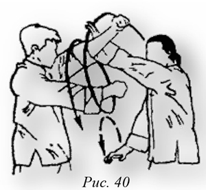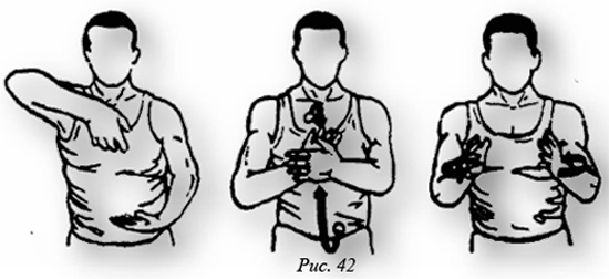 Также одновременное выполнение нескольких кругов разного типа с целью наработки взаимонезависимых свободных движений, которые в бою позволяют одновременно реагировать на самые разные виды воздействий с любой стороны (рис. 42, 43).