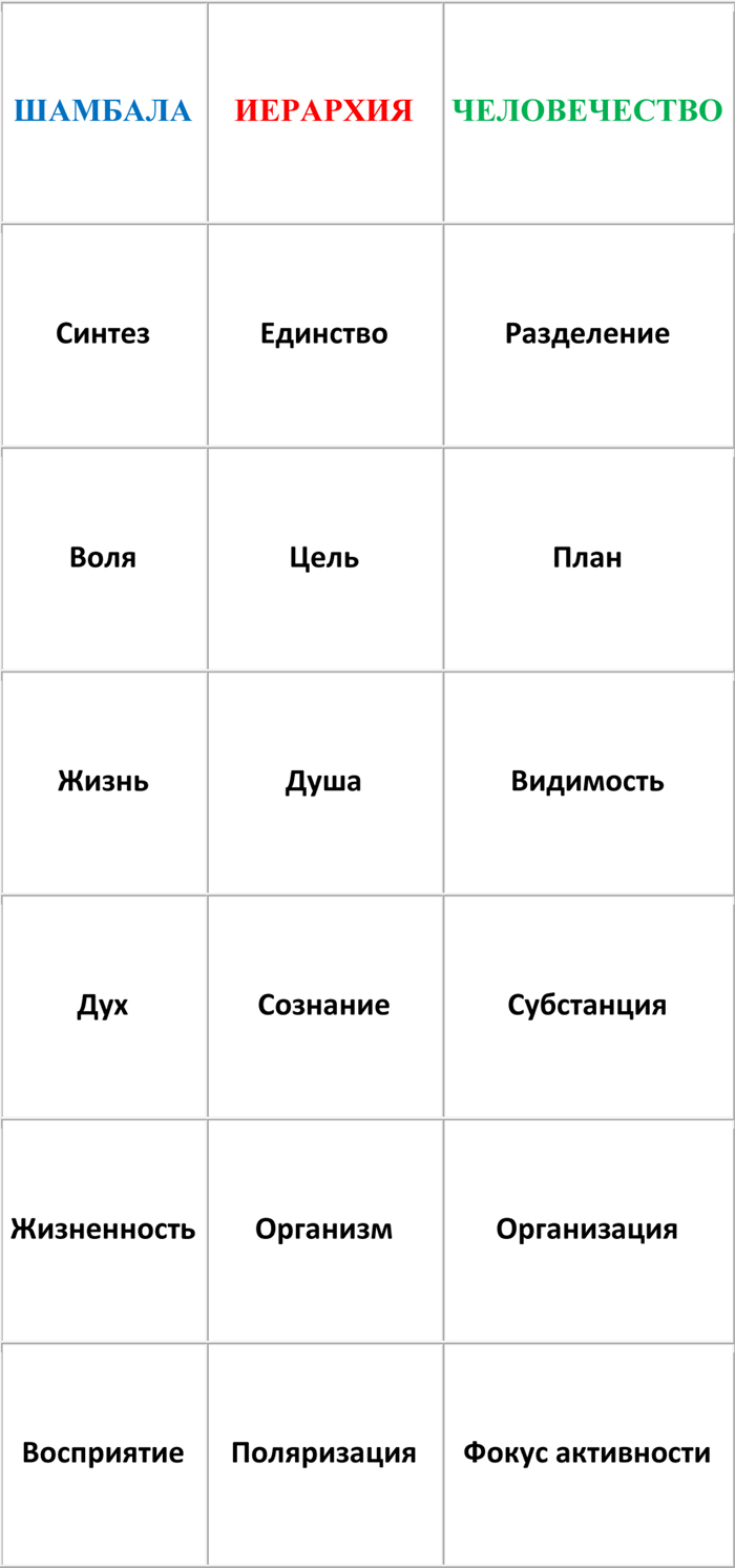 Под напором образования (энергия Второго Луча), через рост концепции синтеза (энергия Первого Луча) и правильное использование энергии (энергия Пятого Луча) этот мир можно привести в состояние готовности к проявлению Иерархии.